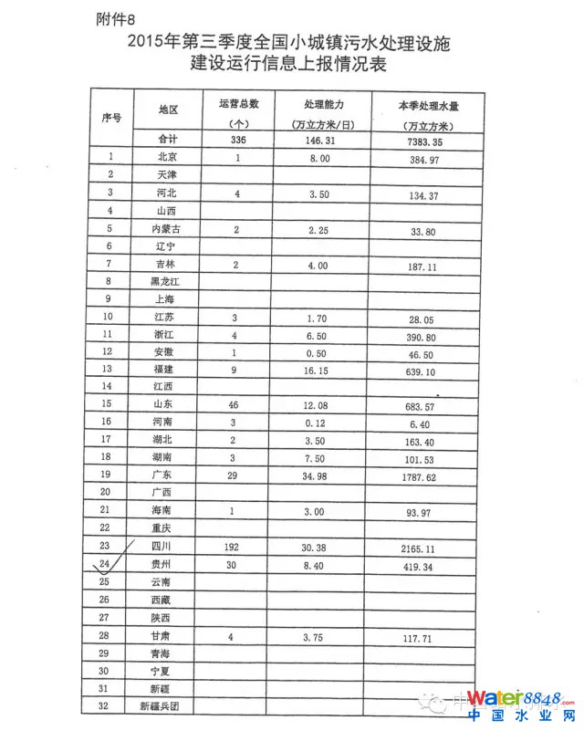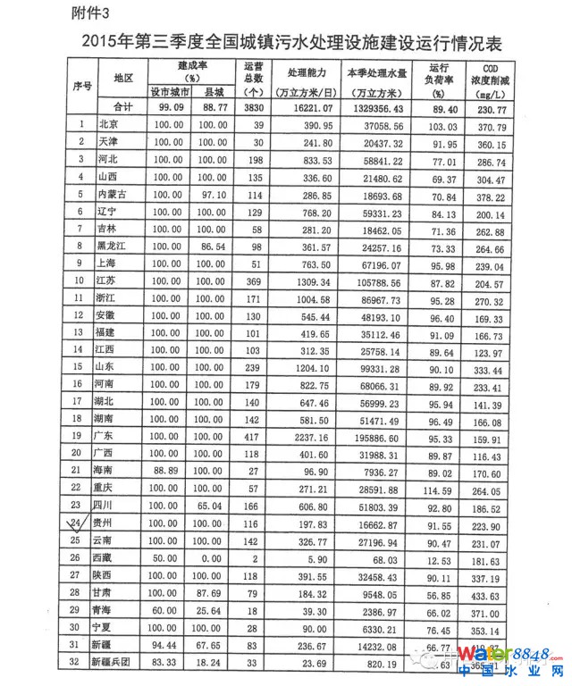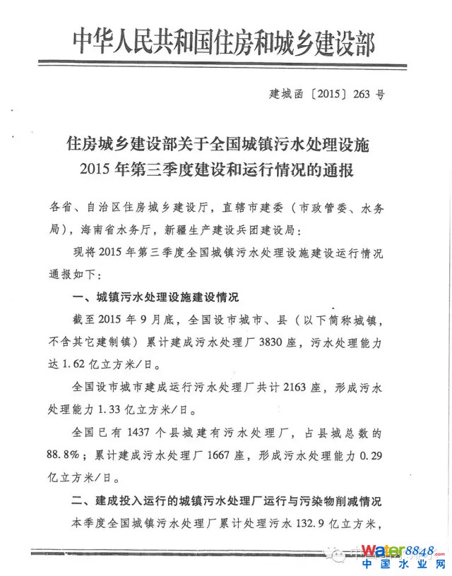 最新通報:住建設(shè)部關(guān)于全國城鎮(zhèn)污水處理設(shè)施2015年第三季度建設(shè)和運行情況的通報
