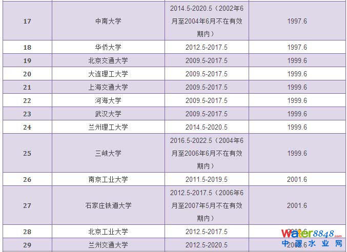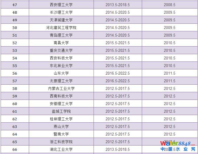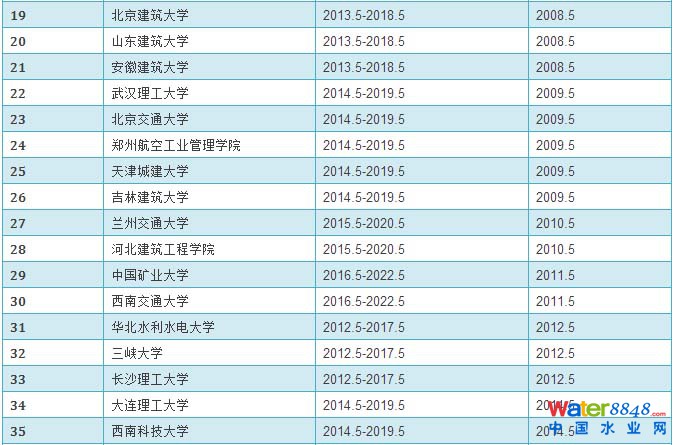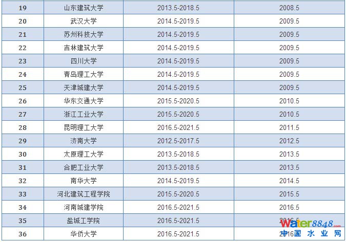 給排水科學與工程專業(yè)評估通過學校和有效期情況統(tǒng)計表