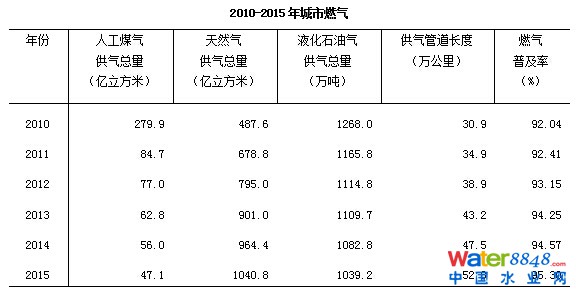 2015年城鄉(xiāng)建設(shè)統(tǒng)計(jì)[1]公報(bào) 2015年,全國(guó)城鄉(xiāng)建設(shè)系統(tǒng)廣大干部職工迎難而上,奮力拼搏,全面貫徹落實(shí)黨和國(guó)家的一系列重大決策,開(kāi)辟城鄉(xiāng)建設(shè)新領(lǐng)域,加快建設(shè)市政基礎(chǔ)設(shè)施,城鄉(xiāng)人居生態(tài)環(huán)境進(jìn)一步改善,實(shí)現(xiàn)了“十二五”的圓滿收官。 一、城市(城區(qū))建設(shè)[2] 概況[3] 2015年年末,全國(guó)設(shè)市城市656個(gè),增加3個(gè),其中,直轄市4個(gè),地級(jí)市291個(gè),縣級(jí)市361個(gè)。據(jù)對(duì)655個(gè)城市和1個(gè)特殊區(qū)域統(tǒng)計(jì)匯總[4],城市城區(qū)戶籍人口3.94億人,暫住人口0.66億人,建成區(qū)面積5.21萬(wàn)平方公里。 城市市政公用設(shè)施固定資產(chǎn)投資[5] 2015年完成城市市政公用設(shè)施固定資產(chǎn)投資16204.4億元,比上年減少0.25%,占同期全社會(huì)固定資產(chǎn)投資總額的2.88%。其中,道路橋梁、軌道交通、園林綠化投資分別占城市市政公用設(shè)施固定資產(chǎn)投資的45.8%、22.9%和9.8%。 城市供水和節(jié)水 2015年年末,城市供水綜合生產(chǎn)能力達(dá)到2.97億立方米/日,比上年增長(zhǎng)3.5%,其中,公共供水能力2.31億立方米/日,比上年增長(zhǎng)4.5%。供水管道長(zhǎng)度71.0萬(wàn)公里,比上年增長(zhǎng)4.9%。2015年,年供水總量560.5億立方米,其中,生產(chǎn)運(yùn)營(yíng)用水162.4億立方米,公共服務(wù)用水77.1億立方米,居民家庭用水208.9億立方米。用水人口4.51億人,人均日生活用水量174.5升,用水普及率98.07%[6],比上年增加0.43個(gè)百分點(diǎn)。2015年,城市節(jié)約用水40.3億立方米,節(jié)水措施總投資23.1億元。 城市燃?xì)?/strong> 2015年,人工煤氣供氣總量47.1億立方米,天然氣供氣總量1040.8億立方米,液化石油氣供氣總量1039.2萬(wàn)噸,分別比上年減少15.8%、增長(zhǎng)7.9%、減少4.0%。人工煤氣供氣管道長(zhǎng)度2.1萬(wàn)公里,天然氣供氣管道長(zhǎng)度49.8萬(wàn)公里,液化石油氣供氣管道長(zhǎng)度0.9萬(wàn)公里,分別比上年減少26.7%、增長(zhǎng)14.6%、減少18.0%。用氣人口4.38億人,燃?xì)馄占奥?5.30%,比上年增加0.73個(gè)百分點(diǎn)。 城市集中供熱 2015年年末,城市蒸汽供熱能力8.1萬(wàn)噸/小時(shí),比上年減少4.7%,熱水供熱能力47.3萬(wàn)兆瓦,比上年增長(zhǎng)5.7%,供熱管道20.4萬(wàn)公里,比上年增長(zhǎng)9.2%,集中供熱面積67.2億平方米,比上年增長(zhǎng)10.0%。 城市軌道交通 2015年年末,全國(guó)有24個(gè)城市建成軌道交通,線路長(zhǎng)度3069公里,比上年增長(zhǎng)13.1%,車(chē)站數(shù)2008個(gè),其中換乘站441個(gè),配置車(chē)輛數(shù)16524輛。全國(guó)38個(gè)[7]城市在建軌道交通,線路長(zhǎng)度3994公里,比上年增長(zhǎng)32.9%,車(chē)站數(shù)2547個(gè),其中換乘站680個(gè)。 城市道路橋梁 2015年年末,城市道路長(zhǎng)度36.5萬(wàn)公里,比上年增長(zhǎng)3.6%,道路面積71.8億平方米,比上年增長(zhǎng)5.1%,其中人行道面積15.8億平方米。人均城市道路面積15.60平方米,比上年增加0.26平方米。 城市排水與污水處理 2015年年末,全國(guó)城市共有污水處理廠1943座,比上年增加136座,污水廠日處理能力14028萬(wàn)立方米,比上年增長(zhǎng)7.2%,排水管道長(zhǎng)度54.0萬(wàn)公里,比上年增長(zhǎng)5.6%。城市年污水處理總量428.8億立方米,城市污水處理率91.90%,比上年增加1.72個(gè)百分點(diǎn),其中污水處理廠集中處理率87.97%,比上年增加2.03個(gè)百分點(diǎn)。城市再生水日生產(chǎn)能力2317萬(wàn)立方米,再生水利用量44.5億立方米。 城市園林綠化 2015年年末,城市建成區(qū)綠化覆蓋面積210.5萬(wàn)公頃,比上年增長(zhǎng)4.4%,建成區(qū)綠化覆蓋率40.12%,比上年降低0.1個(gè)百分點(diǎn);建成區(qū)綠地面積190.8萬(wàn)公頃,比上年增長(zhǎng)4.8%,建成區(qū)綠地率36.36%,比上年增加0.07個(gè)百分點(diǎn);公園綠地面積61.4萬(wàn)公頃,比上年增長(zhǎng)5.4%,人均公園綠地面積13.35平方米,比上年增加0.27平方米。 國(guó)家級(jí)風(fēng)景名勝區(qū) 2015年年末,全國(guó)共有225處國(guó)家級(jí)風(fēng)景名勝區(qū),風(fēng)景名勝區(qū)面積11.1萬(wàn)平方公里,可游覽面積4.4萬(wàn)平方公里,全年接待游人8.4億人次。國(guó)家投入70.3億元用于風(fēng)景名勝區(qū)的維護(hù)和建設(shè)。 城市市容環(huán)境衛(wèi)生 2015年年末,全國(guó)城市道路清掃保潔(覆蓋)面積73.0億平方米,其中機(jī)械清掃面積40.6億平方米,機(jī)械清掃率55.5%。全年清運(yùn)生活垃圾、糞便2.06億噸,比上年增長(zhǎng)6.0%。全國(guó)城市共有生活垃圾無(wú)害化處理場(chǎng)(廠)890座,比上年增加72座,日處理能力57.7萬(wàn)噸,處理量1.80億噸,城市生活垃圾無(wú)害化處理率94.10%,比上年增加2.31個(gè)百分點(diǎn)。 二、縣城建設(shè) 概況 2015年年末,全國(guó)共有縣1568個(gè),減少28個(gè)。據(jù)對(duì)1553個(gè)縣,以及7個(gè)新撤銷(xiāo)縣、14個(gè)特殊區(qū)域和149個(gè)新疆生產(chǎn)建設(shè)兵團(tuán)師團(tuán)部駐地統(tǒng)計(jì)匯總[8],縣城戶籍人口1.40億人,暫住人口0.16億人,建成區(qū)面積2.00萬(wàn)平方公里。 縣城市政公用設(shè)施固定資產(chǎn)投資 2015年,完成縣城市政公用設(shè)施固定資產(chǎn)投資3099.8億元,比上年減少13.2%。其中:道路橋梁、園