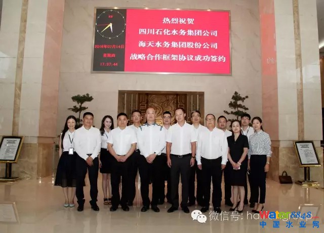 7月14日,四川石化水務(wù)集團(tuán)有限公司與海天水務(wù)集團(tuán)股份公司《戰(zhàn)略合作框架協(xié)議》簽訂儀式在天府新區(qū)隆重舉行,四川石化水務(wù)集團(tuán)總裁王波、海天水務(wù)集團(tuán)總裁李勇在協(xié)議上簽字,雙方高管出席了簽字儀式。