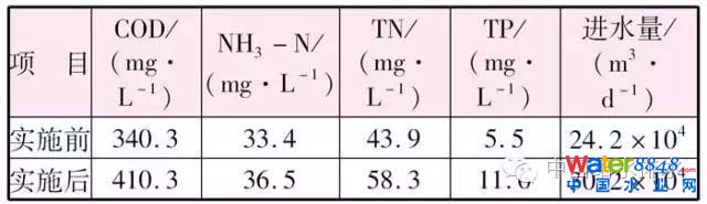 表3精確曝氣實(shí)施前后出水水質(zhì)的變化(mg/L)