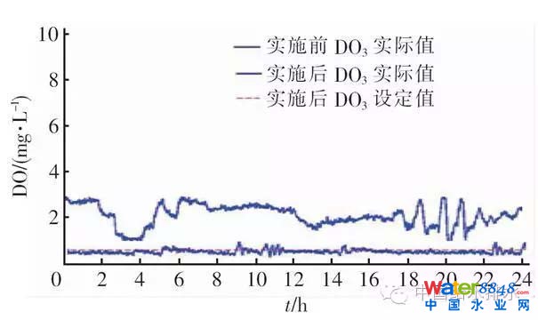 圖5精確曝氣實(shí)施前后7#池中端的DO控制效果對(duì)比