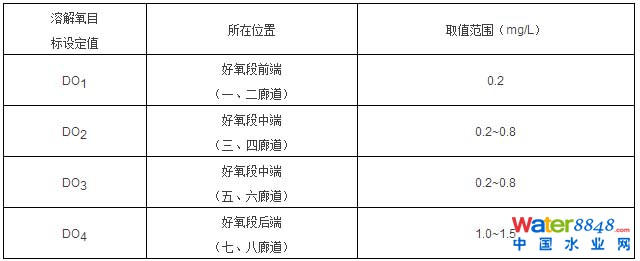 表1溶解氧目標(biāo)設(shè)定值的配置