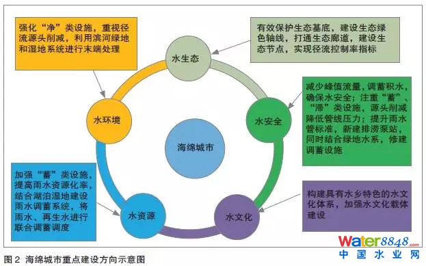 (3) 因地制宜:以城市水文氣象、經(jīng)濟(jì)社會(huì)發(fā)展水平為基礎(chǔ),結(jié)合城市本地條件,合理制定發(fā)展目標(biāo),并科學(xué)布局符合城市實(shí)際情況的項(xiàng)目及設(shè)施;根據(jù)城市降雨、土壤、地形地貌等因素和經(jīng)濟(jì)社會(huì)發(fā)展條件,綜合考慮水資源、水環(huán)境、水生態(tài)、水安全等方面的現(xiàn)狀問題和建設(shè)需求,因地制宜地采取“滲、滯、蓄、凈、用、排”等措施。