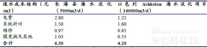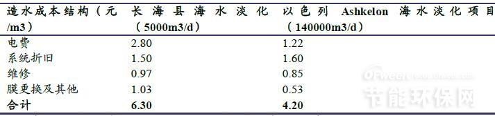 表2、國內(nèi)、以色列典型海水淡化項目成本結(jié)構(gòu)