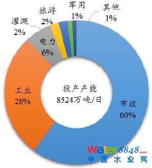 1.2國內(nèi)海水淡化水2/3用于工業(yè),集中在水價較高的沿海省份