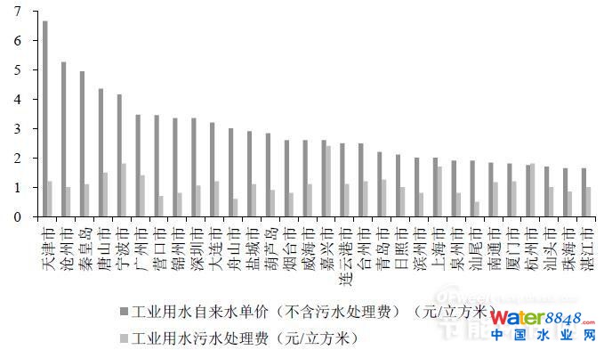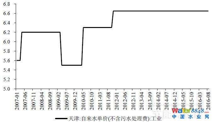 水價處于上升通道,海水淡化處于爆發(fā)臨界點。以國內(nèi)海水淡化規(guī)模最大的地區(qū)天津為例,2007年至今,工業(yè)水價(不含污水處理費)從5.60元/噸上升到6.65元/噸,漲幅達(dá)到19%。由于近年來我國供水成本、污水處理需求、污泥處臵成本都在增加,再加上我國資源型產(chǎn)品價格改革和國有供排水企業(yè)改革的要求,使得國內(nèi)水價上漲。隨著水資源緊缺程度加劇,水務(wù)產(chǎn)品或服務(wù)價格還有上漲的趨勢。政策大力支持,用電成本下降疊加水價處于上升通道,海水淡化行業(yè)迎來爆發(fā)臨界點。