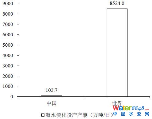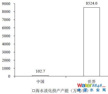 圖1、中國、世界海水淡化工程規(guī)模對比
