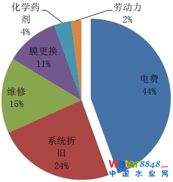 圖15、反滲透法噸水成本結(jié)構(gòu)