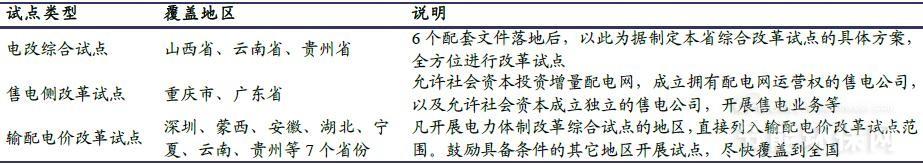 2015年11月,6個電改配套文件出臺,各地試點放開;電改加速降低能源成本。1)配套文件:這六大配套文件包括《關(guān)于推進(jìn)輸配電價改革的實施意見》、《關(guān)于推進(jìn)電力市場建設(shè)的實施意見》、《關(guān)于電力交易機構(gòu)組建和規(guī)范運行的實施意見》、《關(guān)于有序放開發(fā)用電計劃的實施意見》、《關(guān)于推進(jìn)售電側(cè)改革的實施意見》、《關(guān)于加強和規(guī)范燃煤自備電廠監(jiān)督管理的指導(dǎo)意見》。這六個配套文件的發(fā)布,標(biāo)志著新一輪電改開始進(jìn)入全面實施階段。2)各地試點:發(fā)改委表示,發(fā)布6個配套文件,將推動未來電改試點以三類形式分別推進(jìn)。第一類是電改綜合試點。11月初國家發(fā)改委批復(fù)云南和貴州成為第一批電改綜合試點省份,6個配套文件落地后,云貴兩省將以此為據(jù)制定本省綜合改革試點的具體方案,全方位進(jìn)行改革試點。第二類是售電側(cè)改革試點。12月初,國家發(fā)改委批復(fù)重慶、廣東作為售電側(cè)改革試點,允許社會資本投資增量配電網(wǎng),成立擁有配電網(wǎng)運營權(quán)的售電公司,以及允許社會資本成立獨立的售電公司,開展售電業(yè)務(wù)等。第三類是從2014年底就已經(jīng)開始的輸配電價改革試點,目前已經(jīng)有深圳、蒙西、安徽、湖北、寧夏、云南、貴州等7個省份參與其中。根據(jù)文件顯示,凡開展電力體制改革綜合試點的地區(qū),直接列入輸配電價改革試點范圍。鼓勵具備條件的其它地區(qū)開展試點,盡快覆蓋到全國。從廣東省今年3月到5月的交易數(shù)據(jù)來看,平均電價降幅在0.12~0.15元/度之間。