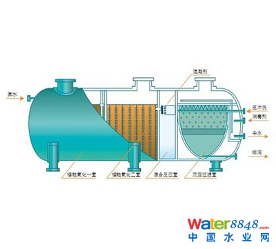 一體化污水處理的設(shè)計(jì)主要是對(duì)生活污水和與之相類似的工業(yè)有機(jī)污水的處理,其主要處理手段是采用目前較為成熟的生化處理技術(shù)接觸氧化法,水質(zhì)設(shè)計(jì)參數(shù)也按一般生活污水水質(zhì)設(shè)計(jì)計(jì)算,按進(jìn)水平均為BOD5200mg/l計(jì),共有六部分組成(1)初沉池(2)接觸氧化池(3)二沉池爆氣(4)消毒池,消毒裝置(5)污泥池(6)風(fēng)機(jī)房、風(fēng)機(jī)組成。