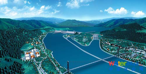 【三期工程】(2004~2009年)三期工程在二期工程的導(dǎo)流明渠截流后就開始建設(shè),工期為6年。修建三期碾壓混凝土圍堰,攔斷導(dǎo)流明渠。水庫蓄水至135m高程。左岸電站及永久船閘開始投入運(yùn)行。三期圍堰與混凝土縱向圍堰形成三期基坑,基坑內(nèi)修建右岸大壩和電站。三期導(dǎo)流期間,江水經(jīng)由泄洪壩段的永久深孔和22個(gè)臨時(shí)導(dǎo)流底孔下泄,船舶經(jīng)雙線五級(jí)船閘通行。2006年5月20日,三峽大壩主體部分完工;2009年年底全部完工!緢D為】三峽水利樞紐工程三維效果圖。