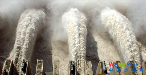 2010年7月20日晨,三峽大壩迎來70 000 m3/s特大洪峰規(guī)模超1998年。7月19日下午,三峽大壩開啟7個(gè)泄洪深孔和2個(gè)排漂孔泄洪。7月19~20日上午,三峽水庫將迎來峰值接近70 000 m3/s的洪水,是三峽工程建成以來的最大規(guī)模的洪水。為減輕長江中下游的防洪壓力,三峽工程積極發(fā)揮削峰、錯(cuò)峰作用,避免此次洪峰和下游洪水疊加在一起給下游造成安全威脅。洪水經(jīng)由三峽大壩攔截后,出庫流量減少到40 000 m3/s,相當(dāng)于三峽工程利用防汛庫容攔截了30 000 m3/s的流量,有效地減小了洪水對下游造成的危害。