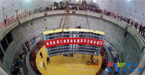 三峽水電站首臺(tái)機(jī)組定子安裝