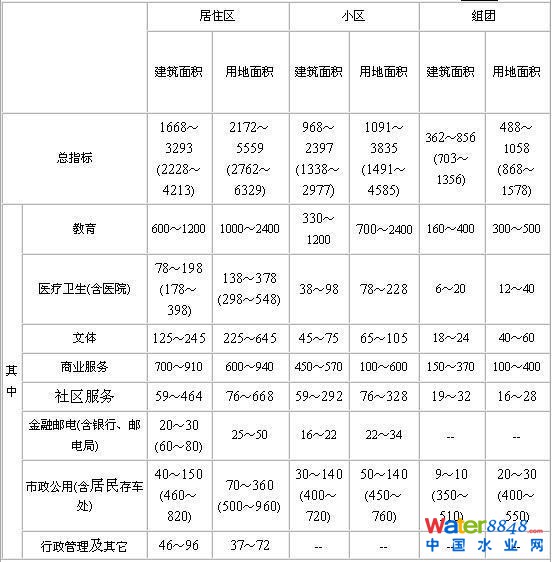 反映居住區(qū)規(guī)模有用地、建筑與人口(戶、套)三個方面內(nèi)容,除用地外,人口(戶、套)、住宅和配建公共服務(wù)設(shè)施的建筑面積及其總量也是基本數(shù)據(jù)為必要指標(biāo)。非配套的其他建筑面積是或有或無,因此,是一個可選用的指標(biāo)。