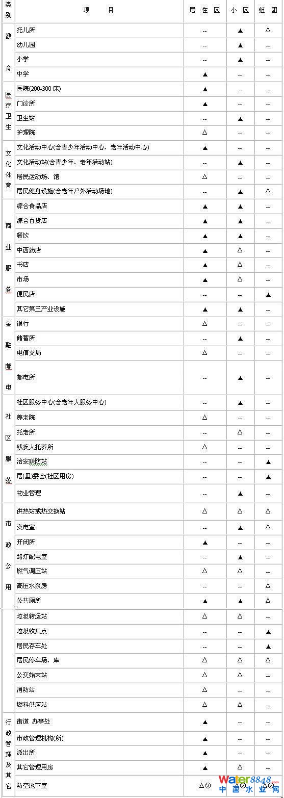 注:①▲為應(yīng)配建的項目;△為宜設(shè)置的項目。