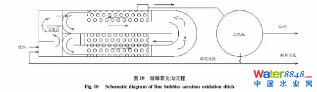 是利用微孔曝氣器具有氧利用率高的特點,采用深水微孔曝氣,與水下推流相結(jié)合,使污泥與原水充分混合,避免了傳統(tǒng)機械曝氣氧化溝供氧效率低、污泥容易沉積等缺點。它是在氧化溝池底分塊鋪設(shè)微孔曝氣器通過鼓風(fēng)曝氣進行供氧的,將充氧設(shè)備和水流推動設(shè)備分開設(shè)置 。
