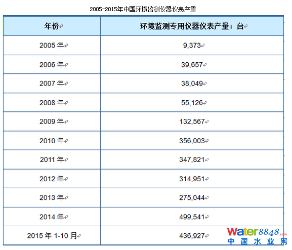 2005-2015年中國環(huán)境監(jiān)測儀器行業(yè)的銷售收入情況