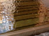 If necessary, technical filters can also be used, which will remove any floating algae in the summer months. In Marlene-Dietrich-Platz water flows in intricate patterns to the lowest point in the piazza. The water glides of flowsteps from the main expanse of water, and here rhythmic wave structures are formed. A detail that is accurate to a millimetre, worked out in 1:1 models. Then, immediately adjacent to the piazza, the water drifts from two sides over linear wave cascades, creating a clear link with the architecture. Finally water also emerges from a source in the northern area of water, then flows down a narrow channel. Given the extremely complex criteria that had to be met, DaimlerChrysler representative Karlheinz Bohn rightly pointed out after the opening that ‘as well as the fascination that this idea exercised over all of us, it soon became clear that an artificial expanse of water creates a number of problems if energy-intensive technology and chemical additives are not used.’ The results are convincing, as the quality of the water is good, the buffer capacity is adequate and the use of fresh water in the buildings has been reduced. In design terms, the ‘Urban Water Feature’ has given Potsdamer Platz a unique open space.