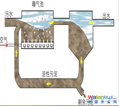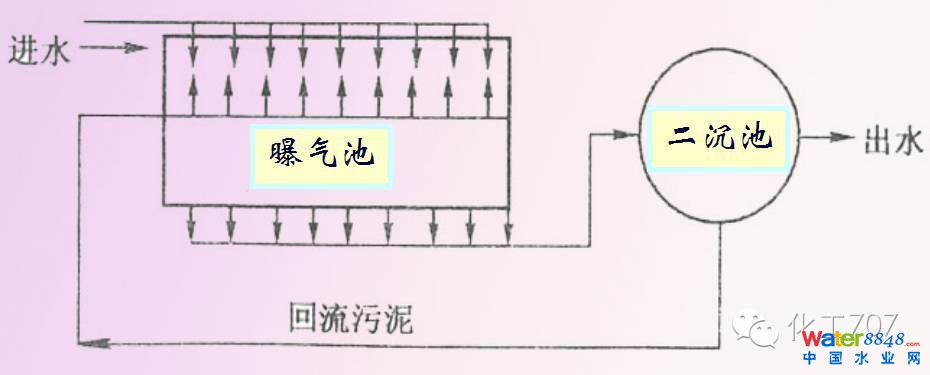 曝氣池中的MLSS約為300~500mg/L,曝氣時間比較短,約為2~3h,處理效率僅約65%左右,有別于傳統(tǒng)的活性污泥法,故常稱變形曝氣。