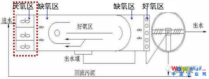 這種工藝在氧化溝上游加設(shè)前置厭氧池,可有效抑制活性污泥膨脹,提高活性污泥的沉降性能.同時為生物除磷提供了條件。水中磷的含量通常在2mg/L以下。