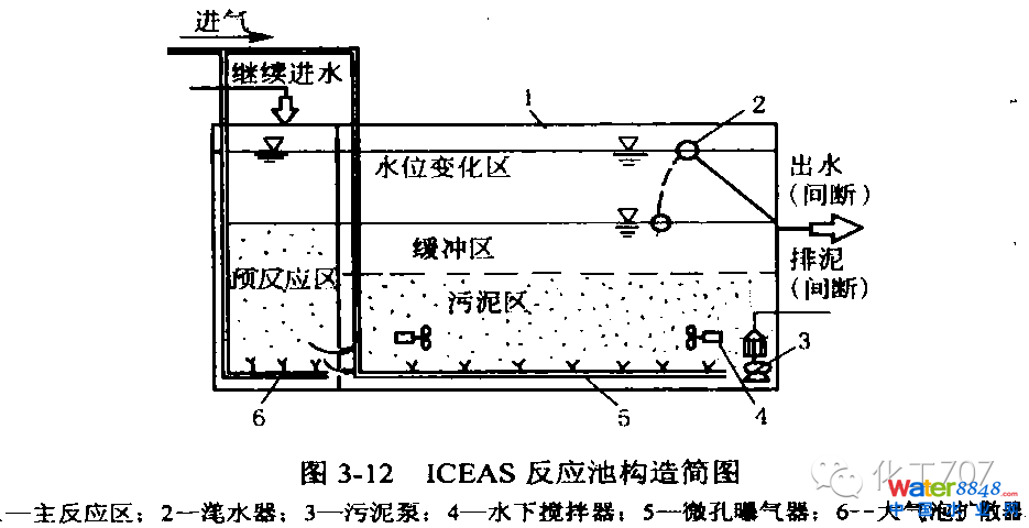 1.主反應(yīng)區(qū)處于停曝攪拌狀態(tài)進(jìn)行反硝化時,連續(xù)進(jìn)入的污水提供碳源,提高脫氮效率