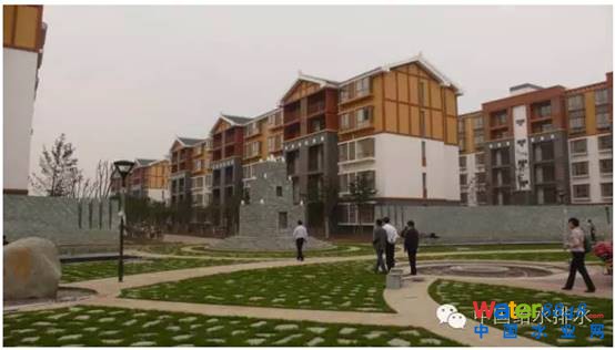 北川新縣城以建設(shè)生態(tài)城市為目標(biāo),在低影響開發(fā)、可持續(xù)排水系統(tǒng)等方面進(jìn)行了有效探索,在改善城市水環(huán)境、保護(hù)和修復(fù)城市水生態(tài)的同時,提高了排水防澇的安全可靠性。以該縣城爾瑪小區(qū)為例。該小區(qū)內(nèi)部建設(shè)眾多雨水自然蓄滯、植草溝、雨水花園等低影響措施,人行步道、停車場、廣場全部采用透水鋪裝,小區(qū)內(nèi)部雨水管道采用穿孔管;所有公園、綠地均利用低影響開發(fā)措施,雨水自然匯入、滲透、溢流,全部摒棄了傳統(tǒng)的雨水管網(wǎng)系統(tǒng),節(jié)省大量投資。通過以上措施,有效避免了場地內(nèi)澇。該小區(qū)雨水花園和透水廣場見圖6和圖7。