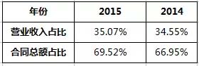 施工總承包合同,在2015年的合同總額中占到69.52%,在營業(yè)總收入中占到35.07%。