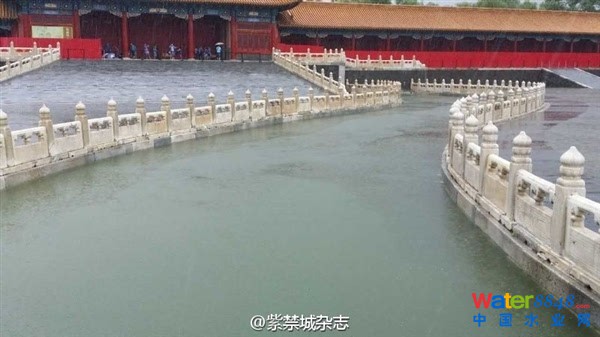 7月19日凌晨至20日夜間,北京遭遇長達(dá)55個小時的降雨天氣過程,是2016年入汛以來最強(qiáng)降雨,全市平均降雨212.6毫米,城區(qū)平均降雨274.0毫米,均超過了2012年“7·21”特大暴雨過程,為多年所罕見。雨后,媒體爭相傳播一組故宮雨景照片,展示了難得一見的“千龍出水”場景,特別是大暴雨時故宮博物院內(nèi)地面未出現(xiàn)明顯積水,更顯示出故宮完善的排水系統(tǒng)的強(qiáng)大排水能力。