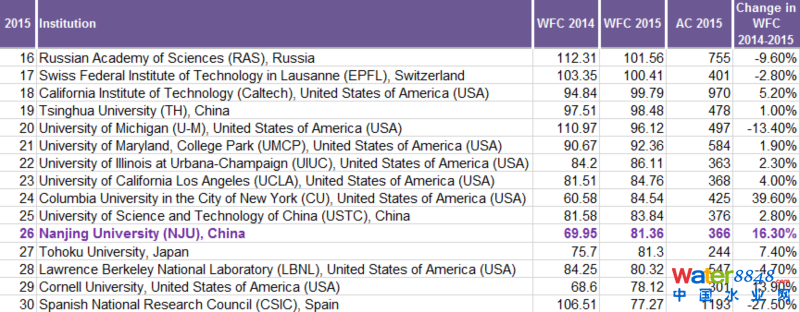 與化學(xué)相比,中國(guó)在地球與環(huán)境科學(xué)領(lǐng)域相對(duì)薄弱,南京大學(xué)成為除中科院之外全球排名最高的機(jī)構(gòu),位于第40位,中國(guó)高校第1位。2014-2015年自然指數(shù)增長(zhǎng)14.0%(15.05-17.14)。