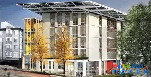 在西雅圖布利特中心的太陽能電池板下,屋頂收集的雨水通過濾池的過濾后可以生產(chǎn)出飲用水。同時(shí),洗滌和沐浴的灰水收集后通過人造濕地過濾,然后進(jìn)入土壤,回歸自然。這個(gè)建筑最為知名之處可能是其廁所用水非常少,每次使用只消耗兩湯匙的水。