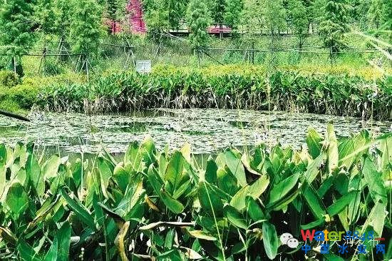 公園里看起來青翠欲滴的花花草草也大有玄機(jī)。公園里,沿著廣場(chǎng)走下去就是沉淀塘,一人多高的蘆葦、海芋隨風(fēng)飄蕩,它們固沙力強(qiáng)、吸污力強(qiáng),能過濾大顆粒懸浮物、細(xì)小沙礫和易沉降的污染物。往下走是狀如長(zhǎng)劍的菖蒲、直立挺拔的水芹,它們的作用是凈化病原體;水中的紙莎草、睡蓮不僅為景色增艷,也有吸收水中重金屬、保持水質(zhì)穩(wěn)定的功效。