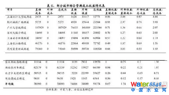 據(jù)一項(xiàng)清華大學(xué)對(duì)部分城市綜合管廊的研究(郭瑩等),綜合管廊的直接收益一般要小于總成本(這里是直接成本);但若計(jì)入外部收益,總收益通常要大于總成本?偸找媾c總成本的比率最高為4.44倍(上海松江大學(xué)城廊道),最低也有0.68(陜西蒲城縣廊道),平均總收益與總成本的比率約為1.91倍,因此從整個(gè)社會(huì)角度看綜合管廊的投資是有效率的。在總收益中,外部收益所占比重較大,最高為87.3%(上海松江大學(xué)城廊道),最低為17.4%(陜西蒲城縣廊道),平均約為55%。