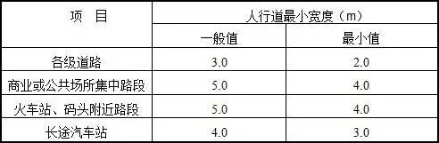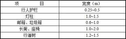 根據(jù)調(diào)查資料,我國城市道路中人行道寬度一般為2m~10m,商業(yè)街、火車站、長途汽車站附近路段人流密度大,攜帶的東西多,因此應(yīng)比一般路段人行道寬。
