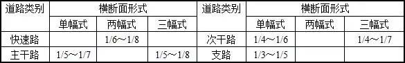 表6 單側(cè)人行道寬度與道路總寬度之比值參考表