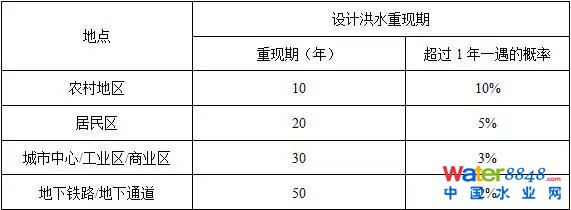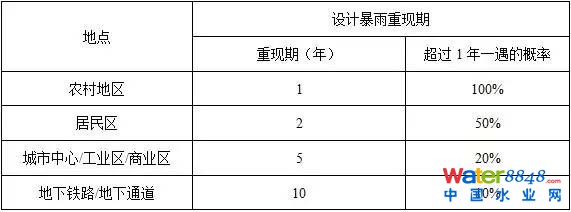 注:1按表中所列重現(xiàn)期設(shè)計(jì)暴雨強(qiáng)度公式時(shí),均采用年最大值法;