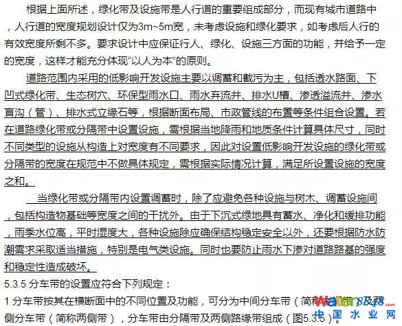 4當(dāng)分隔帶內(nèi)設(shè)置雨水調(diào)蓄設(shè)施時(shí),寬度還應(yīng)滿足所設(shè)置設(shè)施的寬度要求。