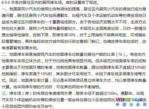 8.0.6.2居住區(qū)內(nèi)地面停車率(居住區(qū)內(nèi)居民汽車的停車位數(shù)量與居住戶數(shù)的比率)不宜超過10%;