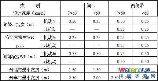 3 分隔帶最小寬度值系按設(shè)施帶寬度為1m考慮的,具體應(yīng)用時(shí),應(yīng)根據(jù)設(shè)施帶實(shí)際寬度確定。