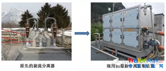 另外,由于主流系統(tǒng)中Anammox菌及污泥的顆;@著提高了污泥的沉降性能。Strass廠原有的三個(gè)二沉池,在筆者參觀時(shí),停用了其中一個(gè)。只需要兩個(gè)二沉池就能保障出水水質(zhì)。這是新型分離富集裝置使用后的額外效果。