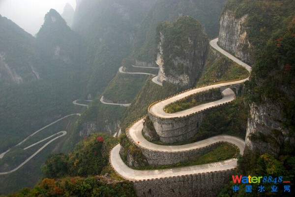 NO.5 天門山盤山公路:張家界天門山盤山公路有“通天大道”之稱,盤山公路全長10.77公里,海拔從200米急劇提升到1300米,大道兩側(cè)絕壁千仞,空谷幽深,共計99個彎,180度急彎此消彼長,被譽為“天下第一公路奇觀”。