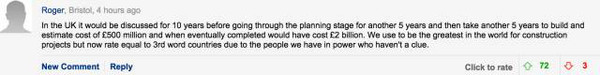 在英國的話,先討論10年,然后花5年的時間來規(guī)劃,再花5年來建造。最初可能預(yù)估花費5億英鎊,但最終完成可能花了20億英鎊。我們曾經(jīng)在工程建造方面是世界上最棒的,現(xiàn)在卻因為掌權(quán)者什么都不懂,降到第三世界國家的水平。