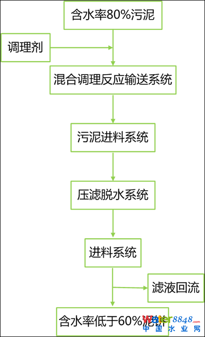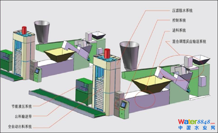 公司自主研發(fā)的“一體化高干污泥脫水系統(tǒng)”,通過特殊設(shè)計的壓濾慮塊,將調(diào)理后的污泥分層壓濾,使污泥中水分排出路徑最短。采用慮壓的方式進(jìn)行加壓,能耗低,污泥在慮室內(nèi)承受高強(qiáng)壓濾壓力,使污泥中的水分最大限度的脫出,從而達(dá)到深度脫水的目的。