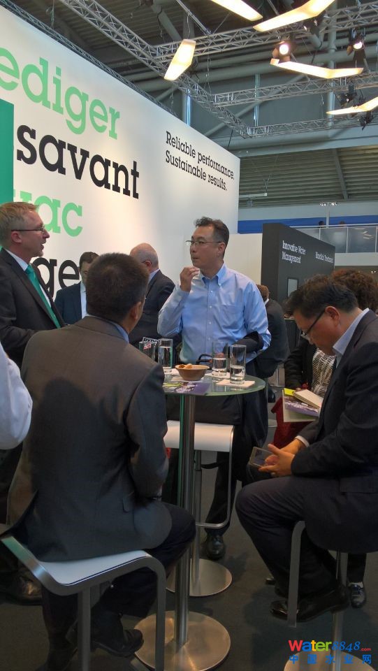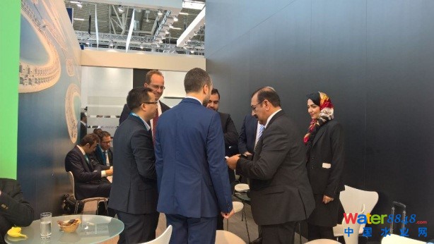 德國BWT水處理公司來自于德國、法國、意大利、伊朗、迪拜、中國等全球最精英的銷售與技術(shù)團隊共計30余人,為來自不同國家地區(qū)的客戶提供不同語種的服務(wù)。并與中國節(jié)能環(huán)保集團代表團、埃及衛(wèi)生部部長代表團、伊朗副總理代表團等多個國家的企業(yè)和政府代表就業(yè)務(wù)合作進行了深入交談。 "Reliable performance, sustainable result." 體現(xiàn)出德國產(chǎn)品服務(wù)的可靠性及可持續(xù)的發(fā)展。