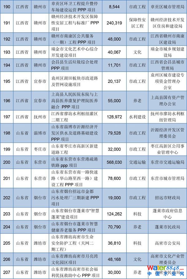 為進(jìn)一步推進(jìn)政府和社會資本合作(以下簡稱PPP)工作取得實質(zhì)性進(jìn)展,發(fā)揮示范項目引領(lǐng)作用,調(diào)動社會資本參與積極性,財政部會同相關(guān)部門聯(lián)合啟動了第三批政府和社會資本合作示范項目申報篩選工作,F(xiàn)將評審結(jié)果及有關(guān)事宜通知如下: