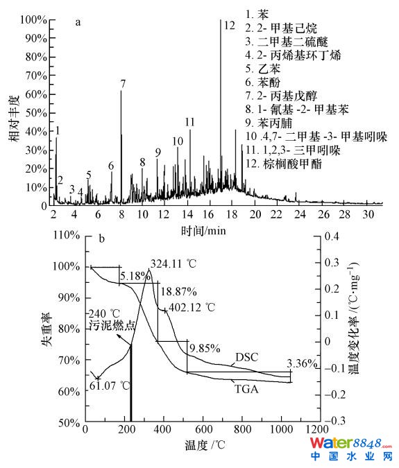 圖 6 市政污泥的氣相色譜圖和DSC-TGA曲線