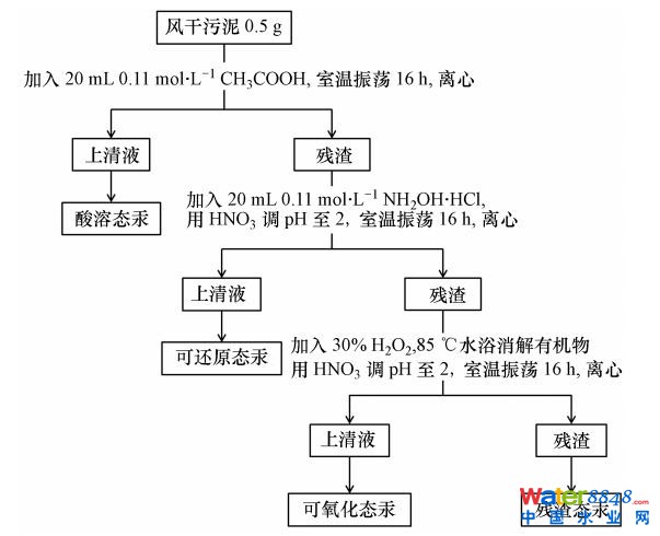 圖 1 污泥BCR法重金屬汞形態(tài)分級提取程序