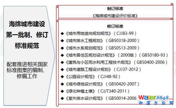 住房和城鄉(xiāng)建設(shè)部城建司和標定司、規(guī)劃司從標準規(guī)范與海綿城市建設(shè)銜接的要求出發(fā),于2015年10月委托中國建設(shè)科技集團牽頭,組織相關(guān)標委會、骨干技術(shù)單位和行業(yè)專家,全面推進相關(guān)標準規(guī)范的制修訂工作。