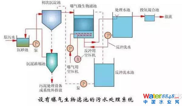 五、曝氣生物濾池的污水處理系統(tǒng)典型工藝流程