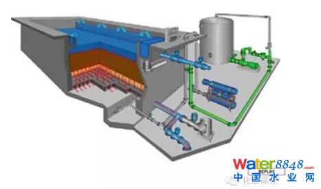 常規(guī)曝氣生物濾池工藝存在問題:濾池易堵塞;配水配氣不均勻,易發(fā)生溝流;曝氣系統(tǒng)會(huì)出現(xiàn)曝氣管連接處破裂,濾池?zé)o法正常運(yùn)行,需經(jīng)常清池維護(hù);反沖排污不徹底;各濾池間水量不平衡等問題。